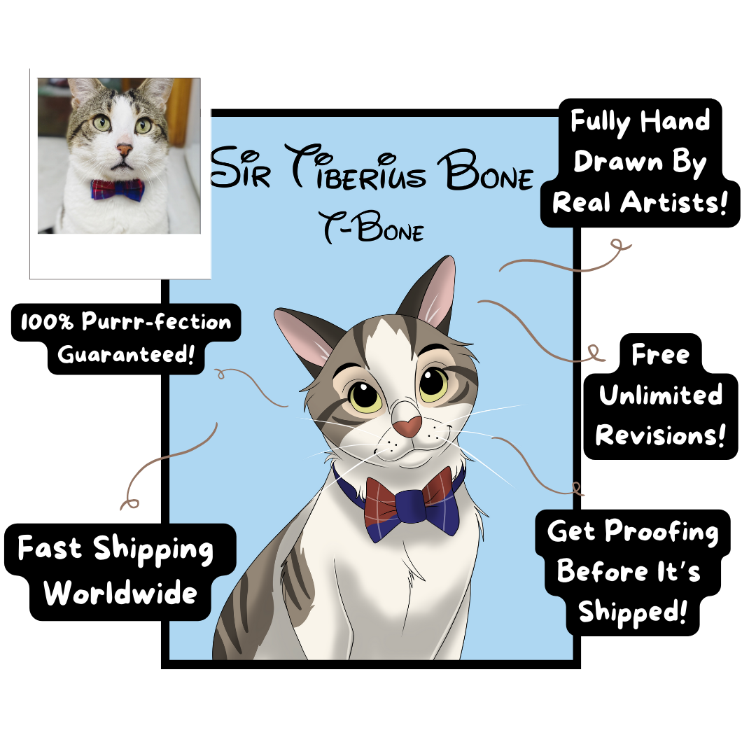 Recreate your pet photos into memorable cartoon paw-traits! You can order a Digital File, which will get emailed to you or you can get your portrait printed on a product of your choice and delivered right to your door! If you have another product in mind, we may be able to organize it for you, so shoot us a message!