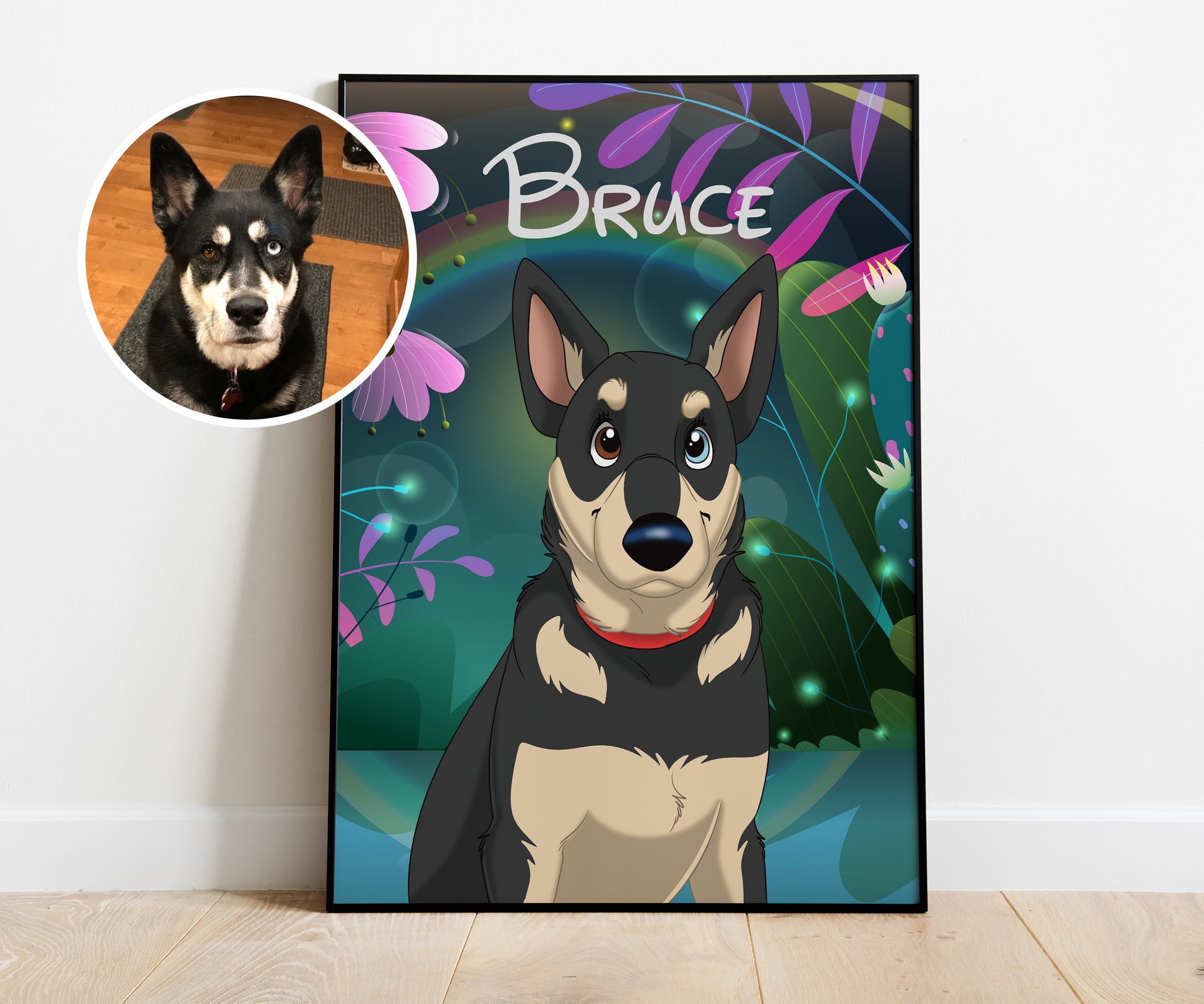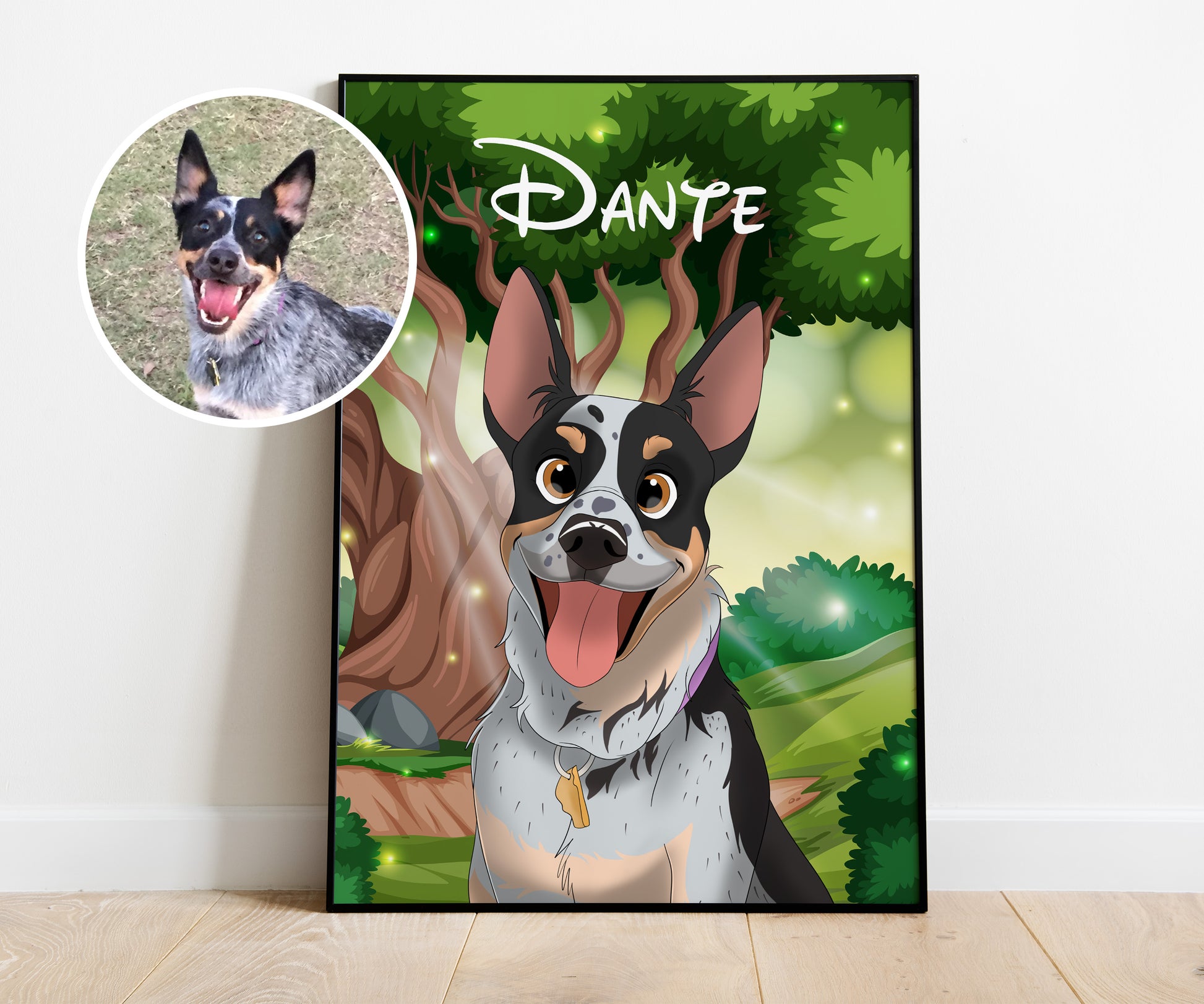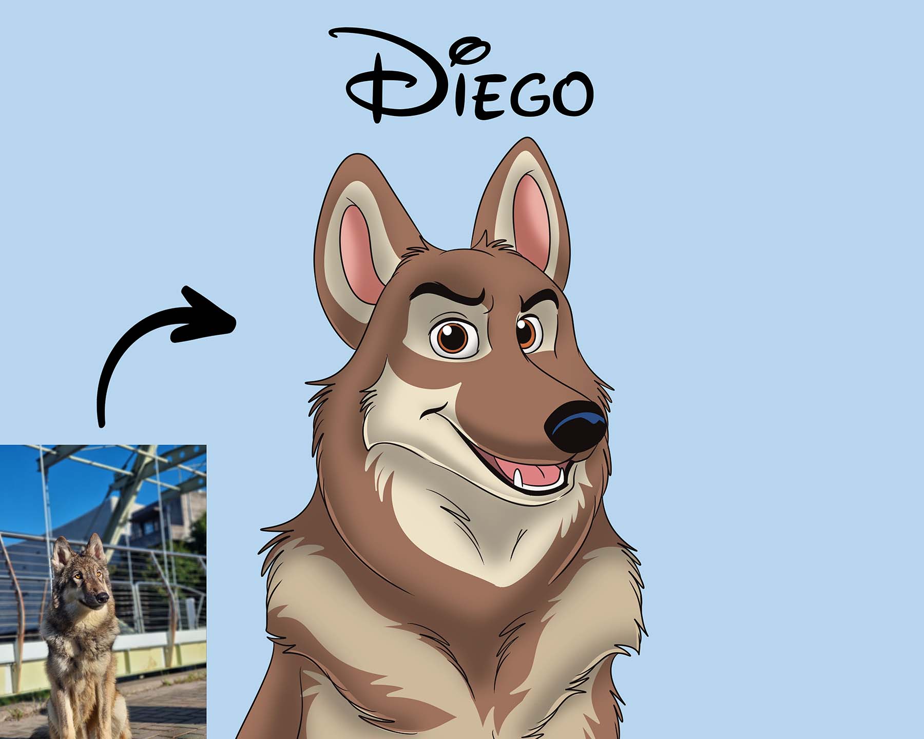 Dive into the enchanting realm of Disney Pet Portraits, where the traditional meets the magical in a blend of wonder and nostalgia. Our pet Disneyfication process is fully hand drawn allowing us to accurately capture your pet into a cartoon.