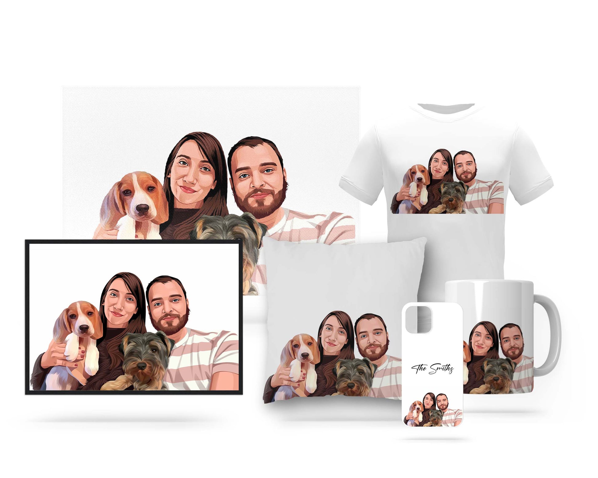 Looking for the perfect, thoughtful gift? Turn your cherished photos into personalized, hand-drawn custom cartoon portraits. You can opt for a high-quality digital file delivered to your email, or choose from a wide range of products to have your custom cartoon portrait printed and shipped directly to your home. And if you've got a special product in mind that you don't see in our selection, don't hesitate to let us know!