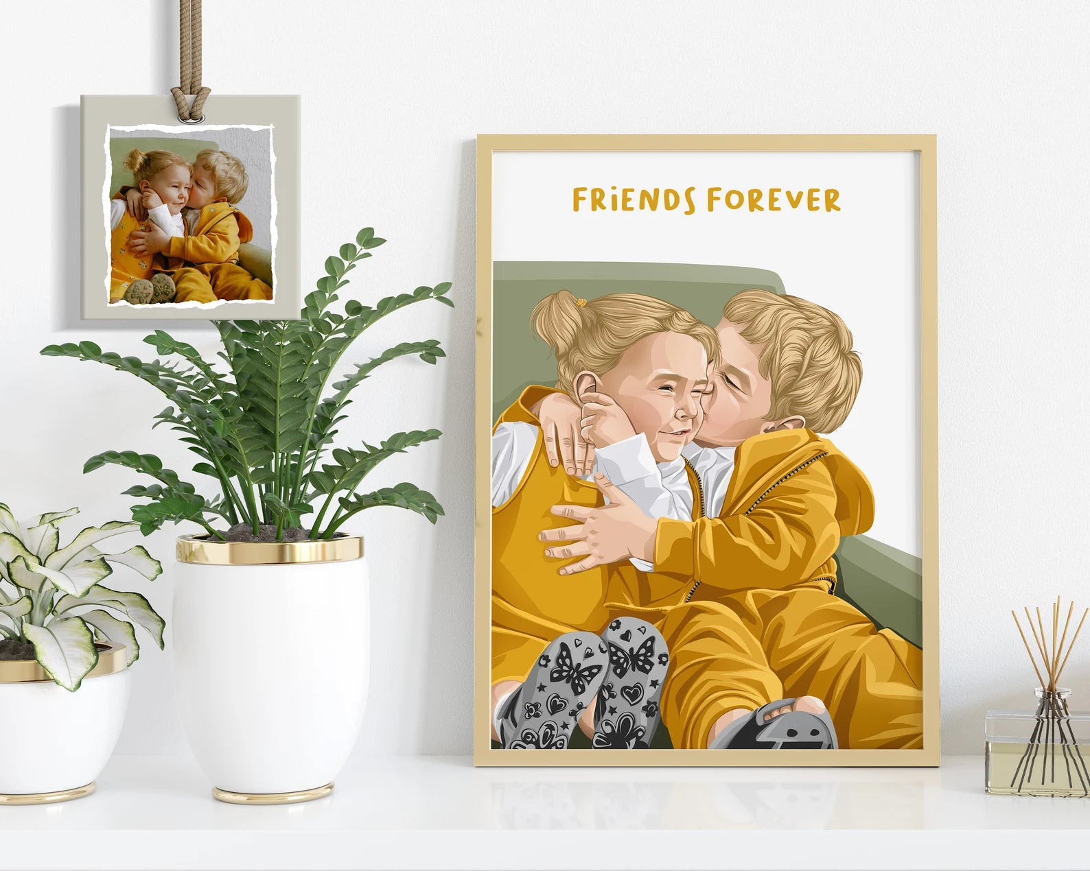 Capture the essence of your treasured moments with our one-of-a-kind custom cartoon portraits. Place your order today!